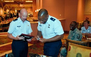 Chief Master Sgt. Steven M. Larwood, 22nd Air Force command chief, visited the 403rd Wing for April's Unit Training Assembly to meet the Airmen and hear their ideas and concerns."I think it is important for people at wing level to have access to headquarters for any concerns or problems that can't