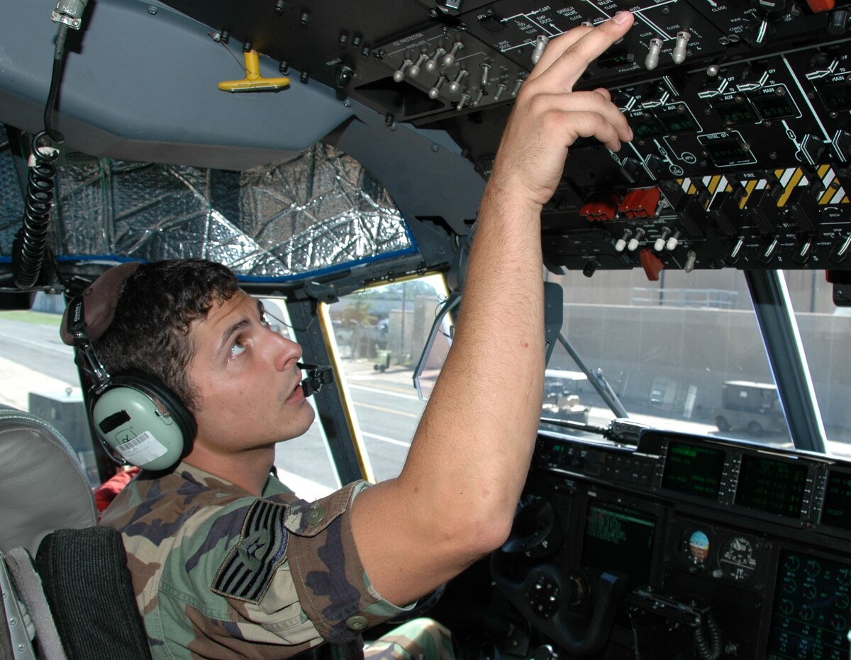 KEESLER AIR FORCE BASE, Miss. -- Tech. Sgt. Justin Moses, 403rd Wing crew chief, runs through the series of preflight checks on one of the wing's C-130J models. These inspections are necessary for ensuring the planes are ready for flight. The crew chiefs inspect the aircraft both inside and out, looking for anything that might make the aircraft unfit to fly. These Citizen Airmen troubleshoot whatever problems they can on the flight line and then refer more specific problems to the subject-matter experts. (U.S. Air Force Photo/Tech. Sgt. Ryan Labadens)