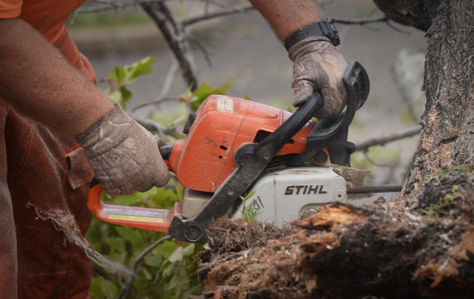 Vectrus contractors work to clear fallen trees and debris on Keesler Air Force Base, Mississippi, Oct. 8, 2017, after Hurricane Nate, a category one hurricane, made landfall just West of the base. There were no injuries to Keesler AFB personnel and the base sustained no major damage or significant flooding. This is the first hurricane to hit the base since Katrina in 2005, which caused devastation along the Gulf Coast. (U.S. Air Force photo by Senior Airman Travis Beihl)
