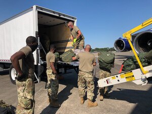 Col. Jeffrey A. Van Dootingh, 403rd Wing commander, waves at veterans and staff gathered for the Gulf Coast Veterans Day Roll-Thru and Wave event at the Armed Forces Retirement Home, Gulfport, Mississippi, Nov. 7, 2020. The celebration featured a parade of vintage automobiles, first responder